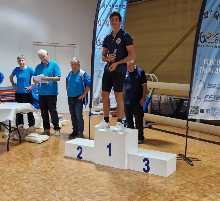 Dimanche dernier, en salle chez les archers de ST QUINIS, dans la FEDEDERATION FRANCAISE DE TIR A L’ARC notre Jeune BRUNO a fait honneur à notre club en se plaçant à la premier place sur le podium avec un super score de 558 points.